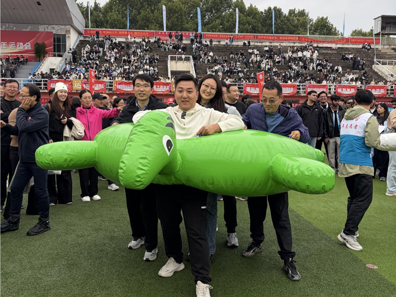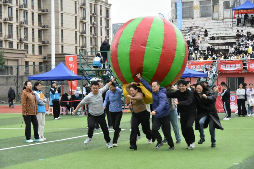 教师赛场同样精彩,龙舟竞速、龟兔赛跑、运转乾坤、协力竞走项目精彩纷呈,老师们并肩携手、节奏统一,用默契诠释团队力量,在竞技中展现别样风采。学院副院长吴树芳、专职辅导员马野超还分别参加了跳远、铅球个人项目,老师们以实际行动为管院学子树立了榜样,激励着大家在赛场上奋勇拼搏。