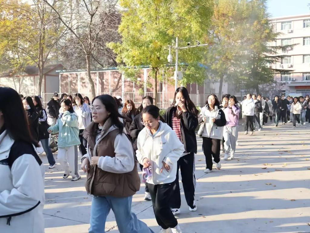 下午三点整,疏散逃生演练正式开始。演练模拟梅园四号公寓二层宿舍突发“火情”,发现险情的同学第一时间向公寓值班员报告,值班员迅速响应并启动应急处置程序,同步开启安全通道、切断相关区域电源,有序组织人员疏散。参与演练的同学们严格遵循预定疏散路线,以湿毛巾捂住口鼻,保持沿墙弯腰低姿前行的正确姿势,沉着有序撤离。整个过程中,师生配合默契、从容不迫,现场秩序井然,所有人员在规定时间内快速、高效抵达指定安全区域,圆满完成疏散任务。