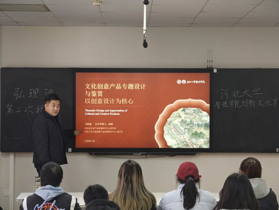 参观结束后,马野超老师以“文化创意产品专题设计与鉴赏”为主题为“弘理班”学员做讲座。他结合多个实际案例,生动阐述了如何将传统文化元素与现代设计理念相结合,打造出既有市场竞争力又能传递文化价值的作品。他特别强调,优秀的设计不仅需要独特的创意,更需要对目标用户需求的精准把握,以及对生产工艺和材料特性的深入了解。他还分享了一些实用的设计方法和思维工具,鼓励学员们在日常学习中培养跨界思维能力,用管理学的知识去赋能文化创意产业的发展。