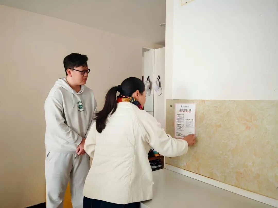 走访过程中,老师们秉持“关爱无死角、安全全覆盖”的原则,深入校外住宿同学的居住环境,从住房结构是否合规,到用电用气是否存在安全隐患,再到供暖条件是否达标、上课通勤路线是否安全便捷等关键问题,进行全面细致的排查与询问。每到一处,老师们都会将《校外住宿安全公约》宣传单张贴在同学住处门口显眼位置,提醒同学们提高安全意识。