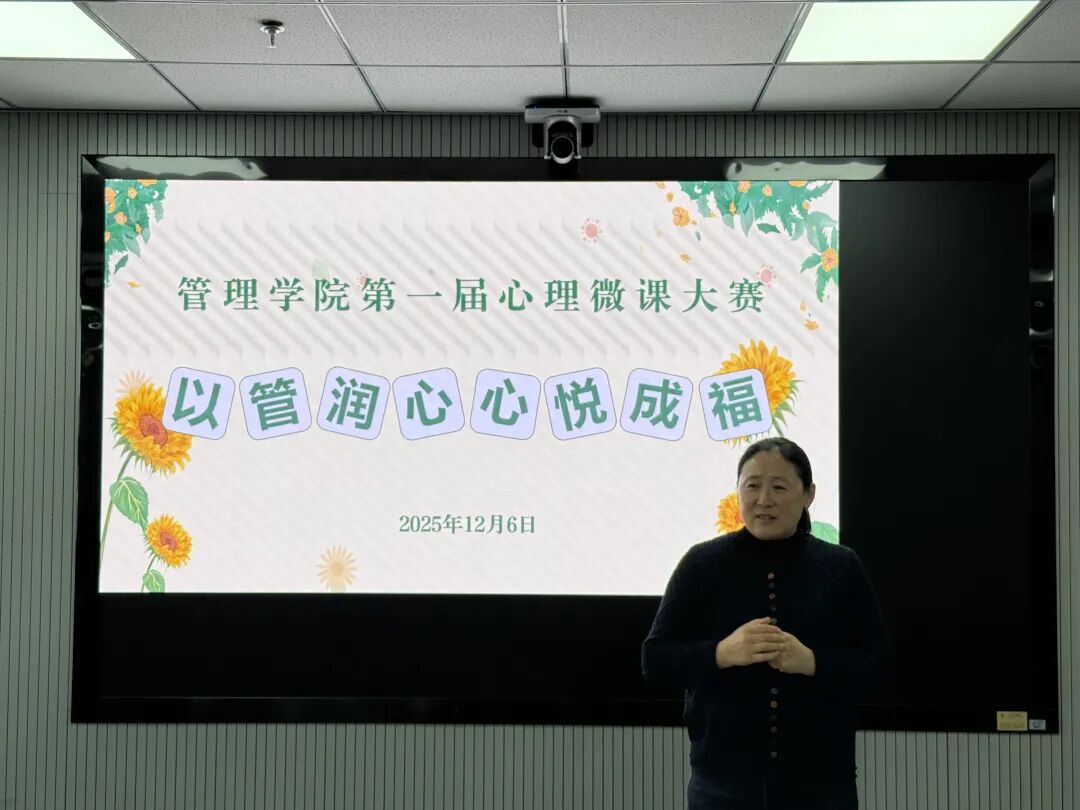 本次心理微课大赛是管理学院在心理育人工作上的一次创新实践,为学生提供了知行合一的心理健康教育交流平台,进一步拓展了学院心理健康教育的形式与内涵。未来,管理学院将继续立足学生心理发展需求,整合优质教育资源,开展更多精准有效、广泛覆盖的心理健康主题活动,持续筑牢学生心理安全防线,助力学子培养积极乐观、理性平和的心态,在求知与成长的道路上实现内心丰盈、人生出彩。